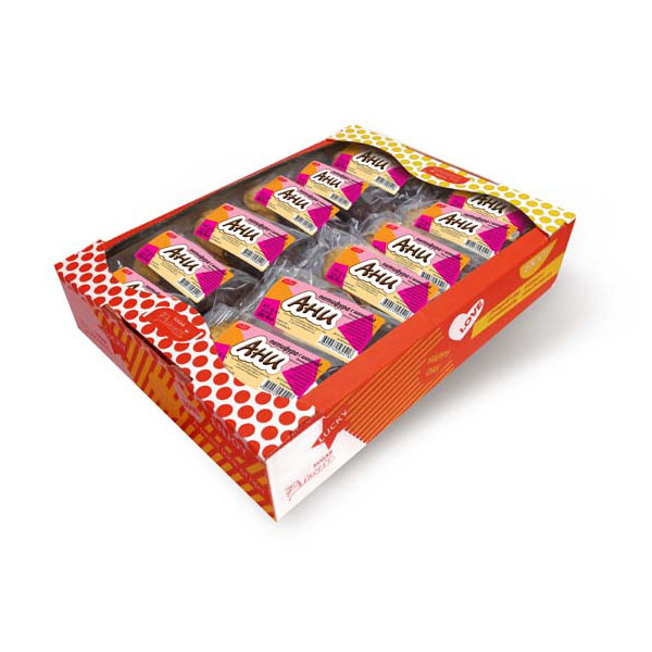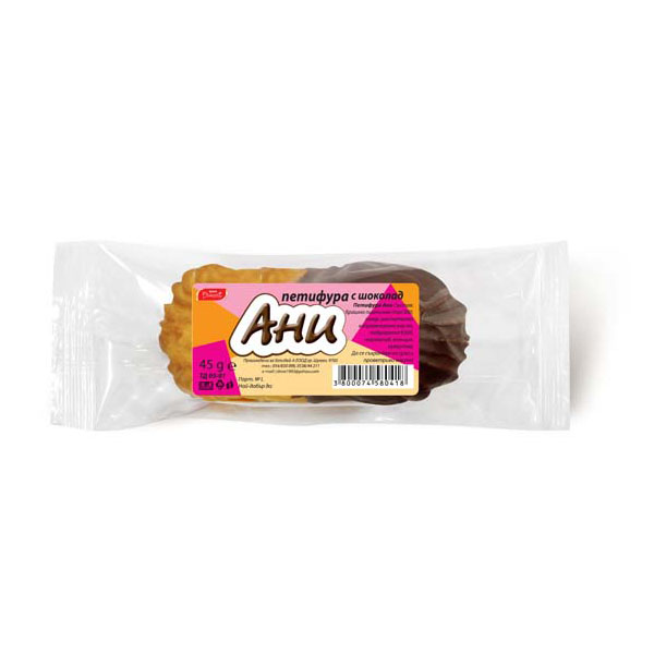 Пшенично брашно Т 500 /мултиензимен комплекс, окислител-аскорбинова киселина/, растителен маргарин, захар- кристал, малцов екстракт, обезмаслено сухо мляко, вода- питейна, слънчогледово олио, консервант- калциев пропионат, бетакаротен /раст. масло, оцветител- β- каротин, антиоксидант- алфа-токофероли/, етилванилин, мармалад за слепване . Какаова глазура: кувертюрно масло, обезмаслено сухо мляко, захар- кристал, скорбяла, какао на прах / 7%/ какаова маса /5%/, какаово масло /0,2%/, емулгатор /соев лецитин /, консервант/ калиев сорбат /, стабилизатор /полиглицерол полирицинолеат/, антиоксиданти /алфа- токофероли, лимонена киселина/.Съдържа глутен и млечни продукти !